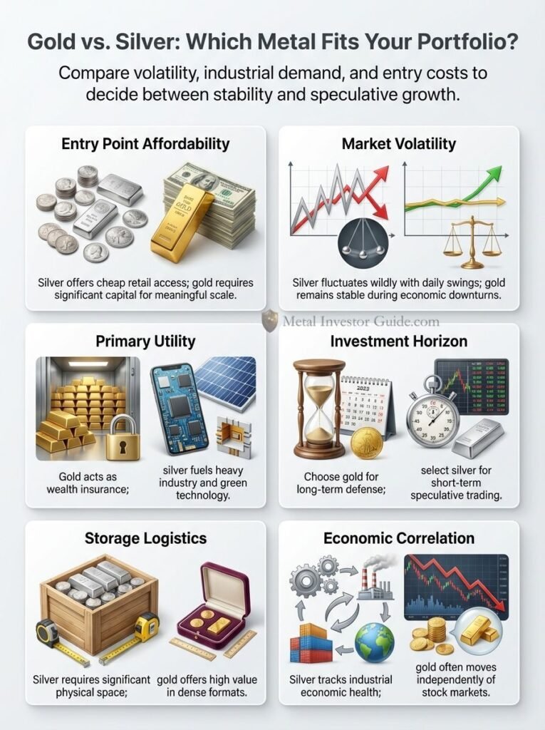 Gold usually fits long-term wealth defense and diversification, while silver leans harder on industrial demand and can swing more.